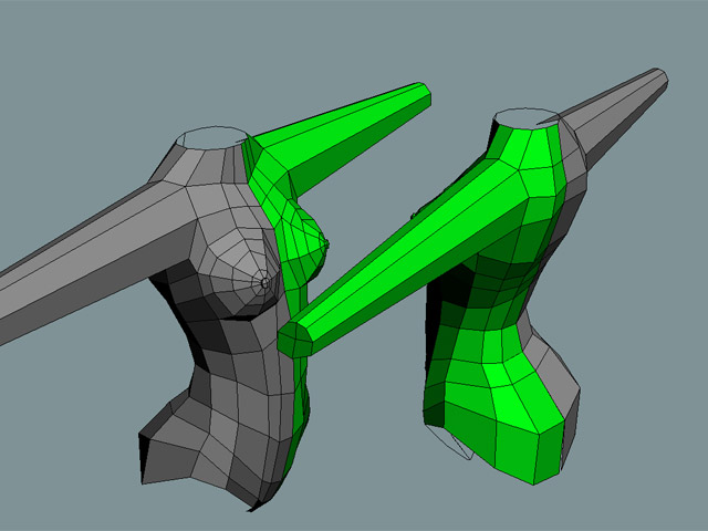 8) Breasts in 3 easy steps! 1) cut in more edges from the existing points and keep the nipple outline circular. 2) create and move enough edgeloops to define their shape. Some people might want to add lots of edgeloops here :) 3) extrude the nipples from the nipple outline.